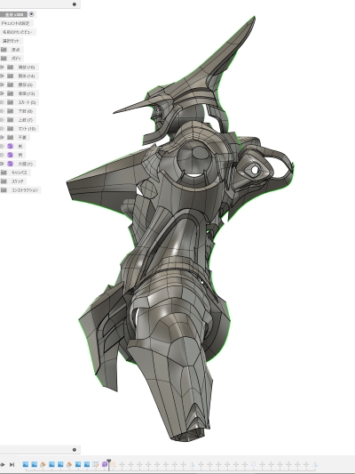 ・2024年8月11日 そろそろ一旦出力したいので、作り込みつつソリッド化。 作画の書き込みが半端ないので頑張りました。 |
