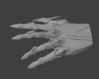・2024年6月14日 補助腕用のキモカッコいい手を作りました。 ほとんど見えなくなりそうだけど作りたかったんだ。 ちゃんと肩の窪みに収まって安心。 で、やっぱり指先しか見えなさそう。 |