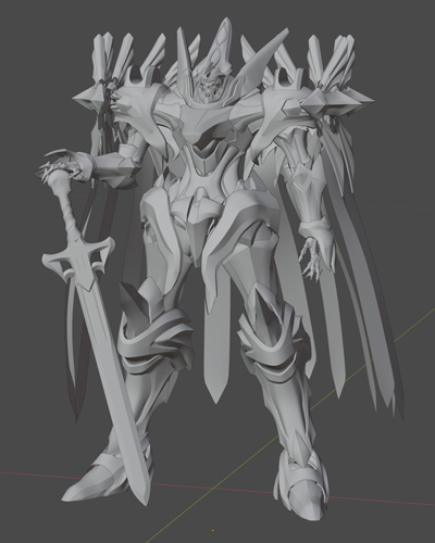 ・2023年5月19日 なんとかなりそうなので『聖刻群龍伝』より ソレイヤード2世ことレーヴェン・ブロイ・アイネス作ることにしました。 最後まで作りきる自信は無いけどやるだけやってみよう。 仮面はコミック版準拠で。 ここまではフォームモデリングでなんとかなってます。 |