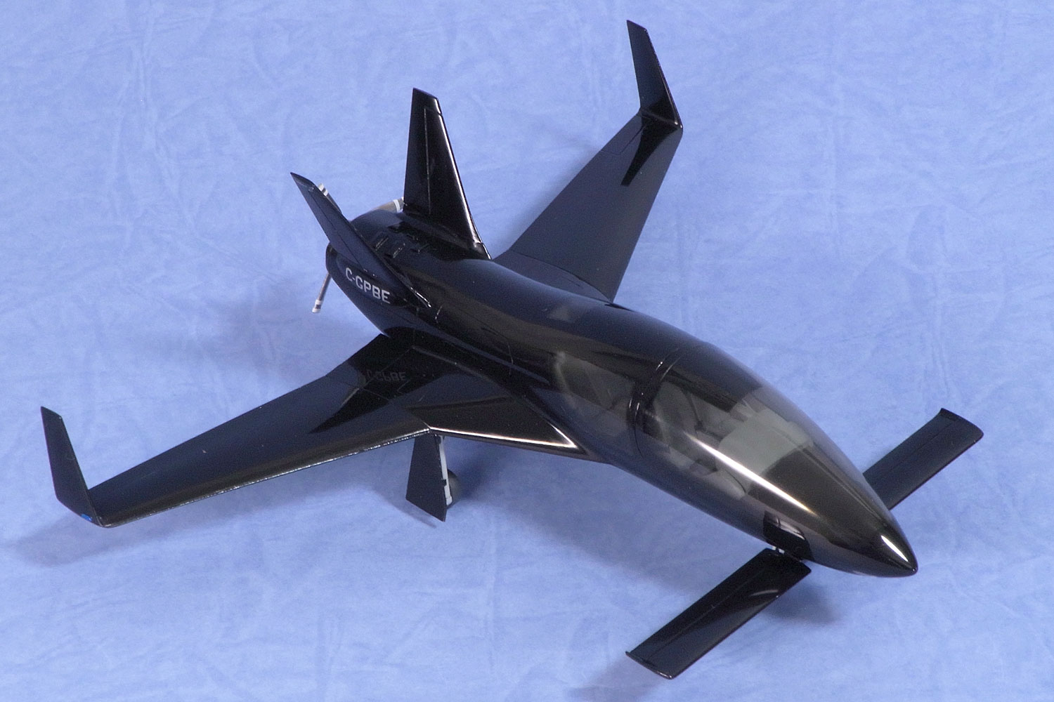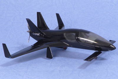 ウクライナの模型メーカーAmodelのキットです。 Optica同様実機のことは知りませんでしたが、箱絵に惹かれて買ってしまいました。 黒ピカのエンテ型プライベート機です。