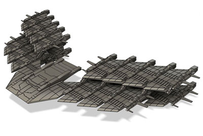 モデリングソフトはFusion360を使用。MarsPro+SK水洗いレジンで出力しました。 支柱のトラス部分はクリアーで出力して、凸部分だけ塗ってトラス構造を表現することにしました。 居住ブロックは不透明レジンで出力して窓は塗装で再現です。