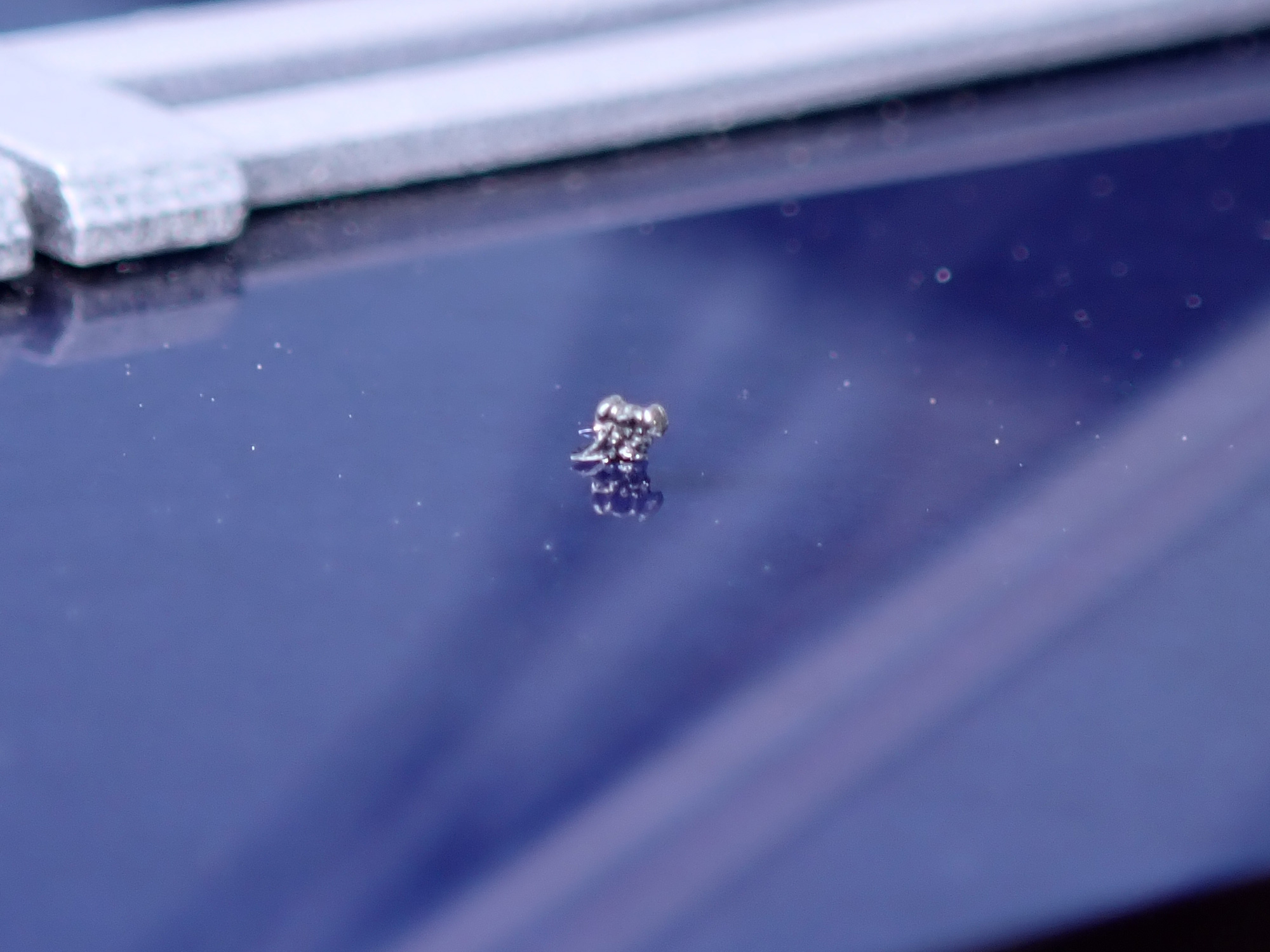 下地色:ウィノーブラック本体色:ホワイト+パープル+コバルトブルー+ウィノーブラック ゲームの感じみたいに金属感が欲しかったので、MGパールでコート後フラットクリアー仕上げです。びみょーに反射します。