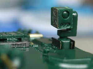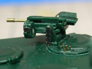 センサーのレンズ部分が真っ平らだったので、くり抜いてレンズを入れます。 グレネードランチャーの銃身は真鍮パイプで作り直しています。 |