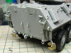 ・後面 車体後面が1mmほど長く合わないため、下部1/3程で一端切断して幅詰め。 下部両側につくスクリューは画像では取り付けが上下が間違っています。 |
