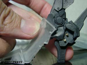 ・腕全体 手首もナイフで切断。 肩関節はなるべく胴−肩関節(キットの分割部分)の角度変更のみで |