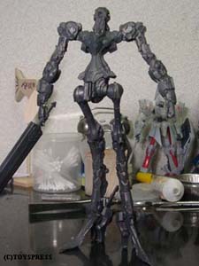 とりあえずこんな感じになりました。 膝が曲げられないのでポーズが限られるなあ。 今日の作業時間は1時間半ほど。 結構楽です。(ここまでは^^;) あとは腕のポーズ変更と関節の修正(これが大変)です。 |