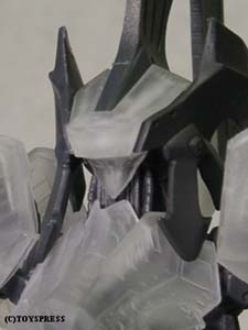 ・目線 ポーズの都合上視線を斜め横に向けたいのですが、 暁姫は首曲がらないかなあ。 瞳を彫り直すとクリアパーツに傷を付けるおそれがあるので、 顔をケガキノコで丁寧に切り離して少し横を向けました。 |