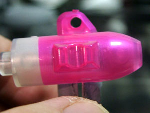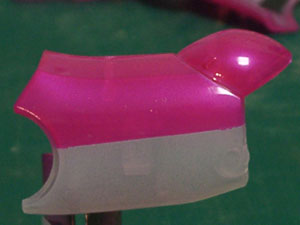 とりあえずクリアパーツに蛍光ピンクを吹いた状態。