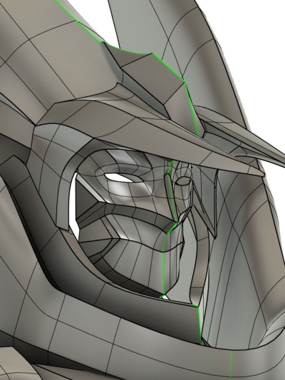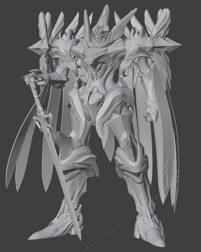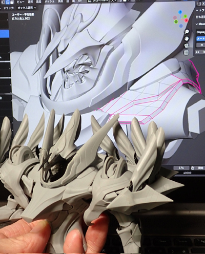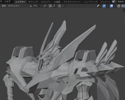・2023年5月19日 なんとかなりそうなので『聖刻群龍伝』より ソレイヤード2世ことレーヴェン・ブロイ・アイネス作ることにしました。 最後まで作りきる自信は無いけどやるだけやってみよう。 仮面はコミック版準拠で。 ここまではフォームモデリングでなんとかなってます。 |