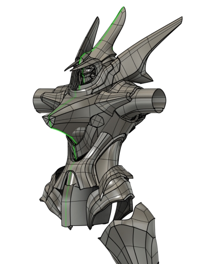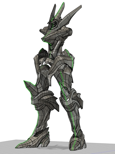 ・2023年6月13日 形の分かる部分をとりあえず作ったけど、描かれていない腰部や背面・関節等はまだ手付かず。 楽造形はここまで、大変なのはこれからだなー。 まず筋肉筒の配置考えて腰作ろう。 |