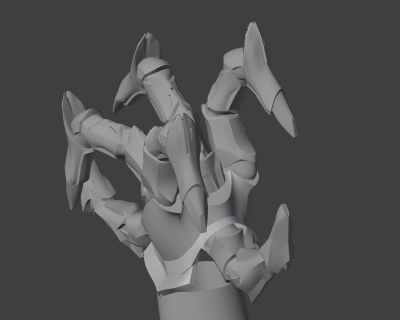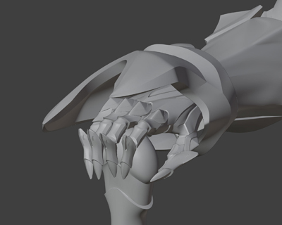 ・2024年6月14日 補助腕用のキモカッコいい手を作りました。 ほとんど見えなくなりそうだけど作りたかったんだ。 ちゃんと肩の窪みに収まって安心。 で、やっぱり指先しか見えなさそう。 |