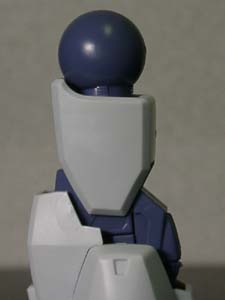 | 大腿部 大腿上面は2o延長して股間のボール部を隠すと共に大腿部を長く見せます。 膝関節後部は隙間が大きく貧弱に感じるため、後部のパーツを3oほど上げ大腿側の関節 に接着しました。 |