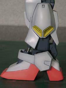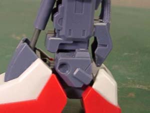 | 下腿部後面 インナーフレーム下部の露出する部分が細いので左右の面を1.2oプラ板を貼り整形。 下腿左右装甲に合わせ後方の部分も幅増ししました。 |