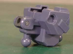 | 足関節 足関節はボールジョイントが見えてしまい情けないので、ボール基部で切断し短縮。 フレーム下端の出っ張りを延長して関節の露出を防ぎました。 これによりフレームで繋がった感じが出ます。 |