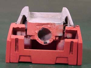 | 踵部 踵部も前足部と同様に改造しました。 踵上部の下腿フレームの受けの部分も足関節を短縮したため干渉する部分を削りました。 |