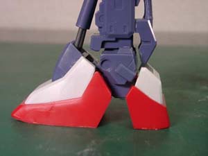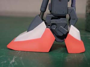 | 足部後面 前足部と踵部の上部の白いパーツは共に下端の接着面で1o幅詰めして低くしました。 |