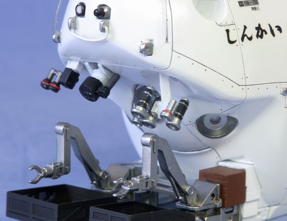 マニピュレーターやカメラの配線は大変そうなので無視して、船首のフック等簡単にできそうなことだけ追加しました。 |