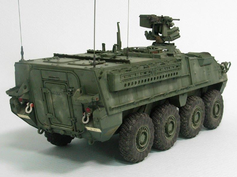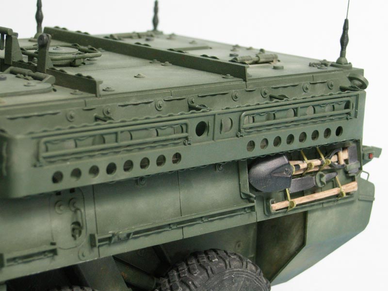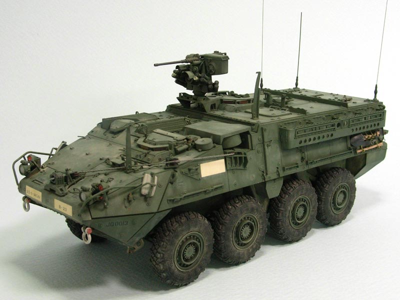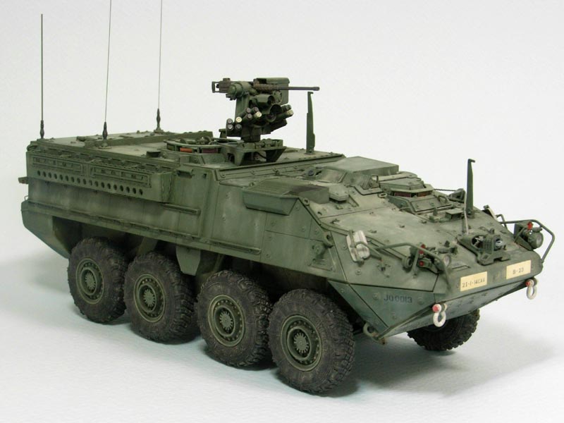 トランペッター、AFVクラブ、ドラゴンの3社がストライカー発売予定の発表があり 前者2社から発売されましたが、もうAFVクラブが決定版じゃないかと思うような出来です。 ドラゴンがどんな形にするのか期待しています。 ストライカーは基本形であるこのM1126の他に9種ほどファミリー車輌があるのですが、 どこまでメーカーがフォローしてくれるのか楽しみです。 まるで側溝の網のようなスラット装甲も発売する予定らしいですが、どんなパーツになるのやら。 これにLAV-25の25mm砲塔を載せてLAV III作れないかなーとちょっとだけ思いましたが、 アフターパーツを待った方が楽そうだと結論。 どっかが出してくれるのを待ってます。 |