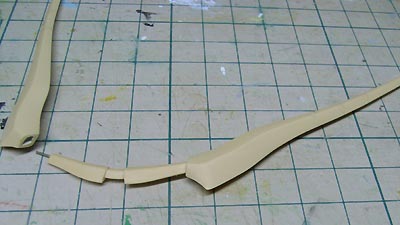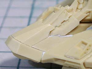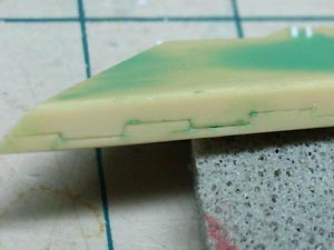 接合部もシャープに仕上げます。 最近形状修正用のパテはSSPHGの粉とシアノンを使用。 |