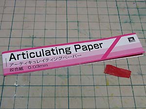・咬合紙 胸部と腹部、胸部と頭部もそのままでは収まらないため調節が必要です。 んで 合わないけどこどが干渉してるのかわかんねー!って時に微妙に便利なのが←コレ。 |