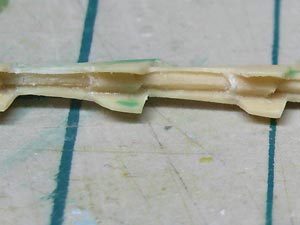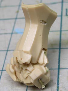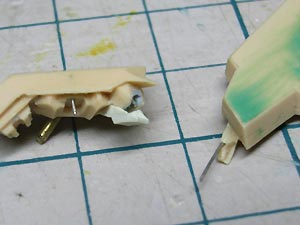 カバーを後で取り付けられるように下部に付く積層状のパーツ(163)上部の左右を削って細くしました。 |