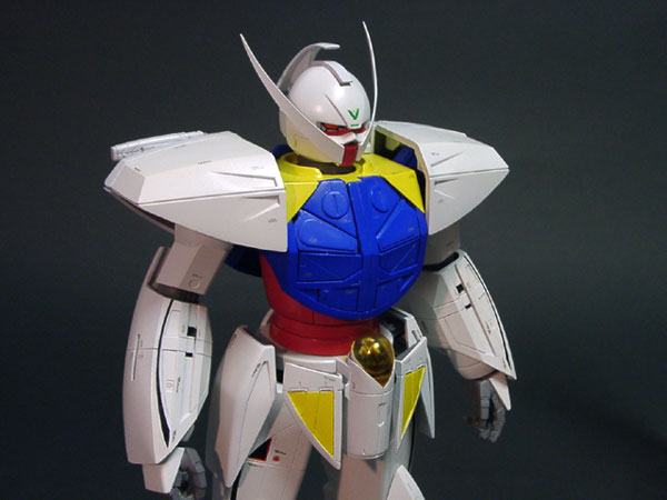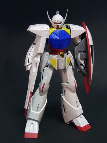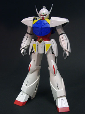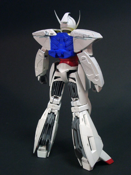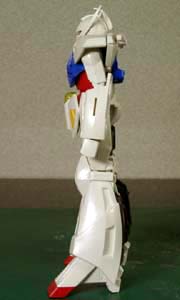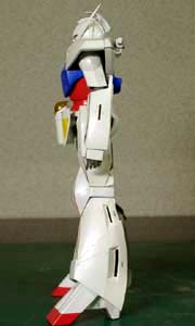 ・左前方より(大画像:40k) 電撃ホビー誌のガンプラ王2000に出した作品です。 このキットは各ブロックのバランスはかなり良いのですが、特に肘、手首、足首付近の流れが悪く、ごつごつした感じを受けます。 |