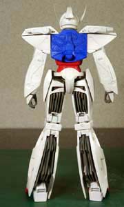 ・右後方より(大画像:41k) ホワイトは基本色がホワイト+ウッドブラウン+イエロー。 ブルーはコバルトブルーが赤を含んでいるため暖色系としています。寒色系にはインディーブルーを使用。 レッドはシャインレッドを暖色系、モンザレッドを寒色系としました。 イエローは基本色はイエロー+ホワイト+オレンジイエロー 関節、メカ部は特色317番のグレーを使用しました。 |