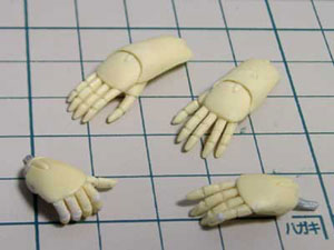 指はひょろひょろなイメージがあるので、やや細めに削っています。 |