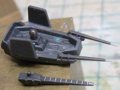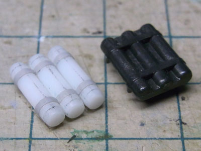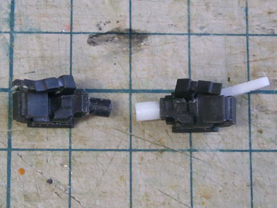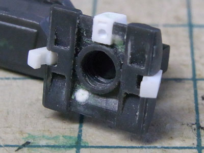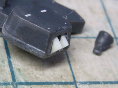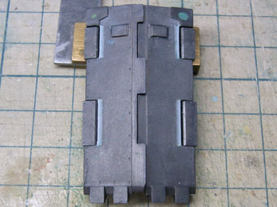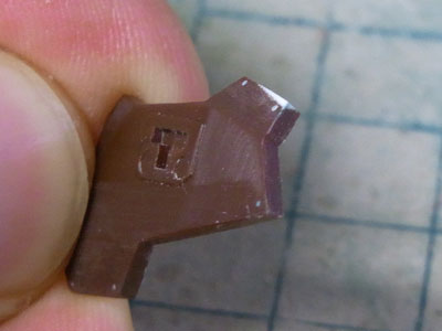 ・OW接続ブロック 側面の装甲板がヒケているので少しパテを使いました。 先端内側に押出しピン跡があるのでこれも埋めます。 |