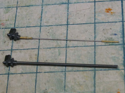 ・アンテナ アンテナはかなり太いので0.3mmピアノ線と真鍮パイプで作りました。 |