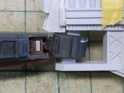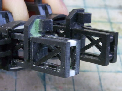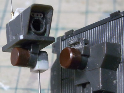 AC本体との接続部にあるトラス部分は側面のダボが丸見えなので、削り取ってから1.2mmプラ板で作り直しました。 |