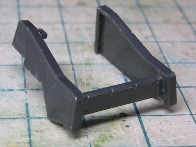 ・ボックスブースター この部品は左右の合わせ目に少し段差が生じるようです。 上下面のモールドをそのままで処理するのは大変なので、一旦平らに削ってしまった後、プラ板で元々あったモールドを再生しました。 側面の手すり状の部分は0.3mm金属線で作り直しました。 |
