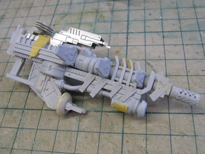 スキッド状の足底部分は前後ともにけっこうヒケがあるのでパテで丁寧に処理します。 側面の面構成が細かく、エッジ出しになかなかに細かい作業が要求されます。 |