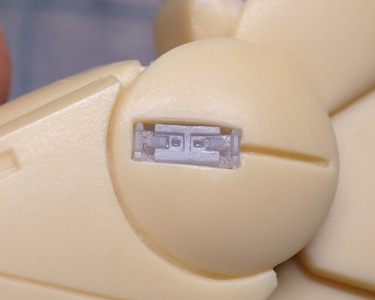 頭部バルカンは丸穴だけだったので、プラ板と真鍮パイプでディテールアップ。