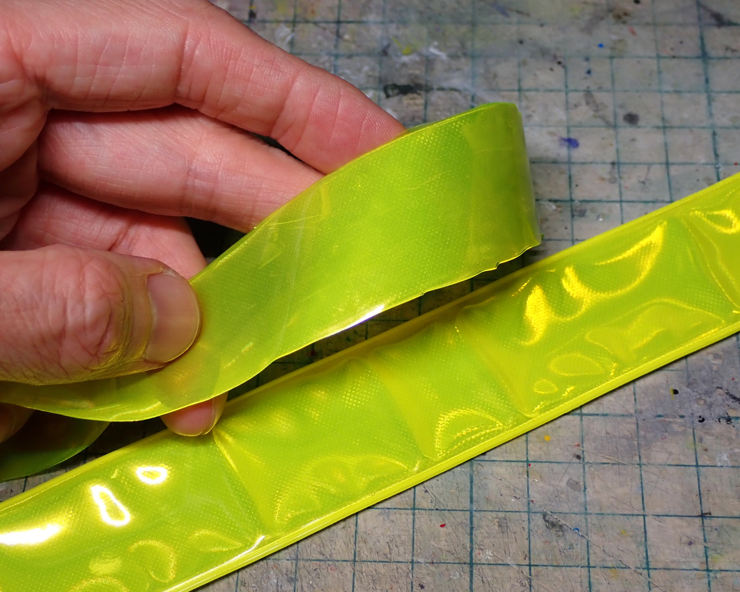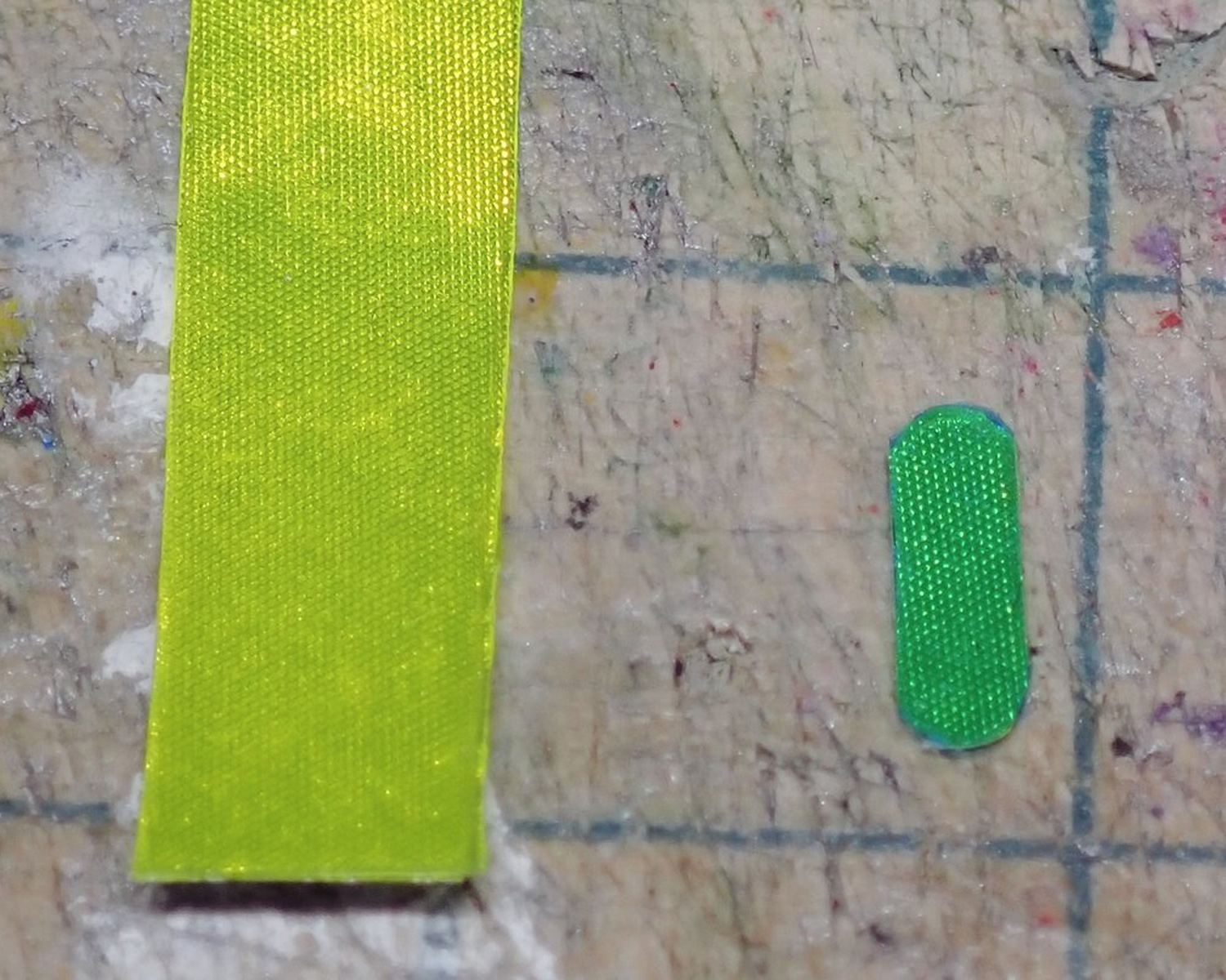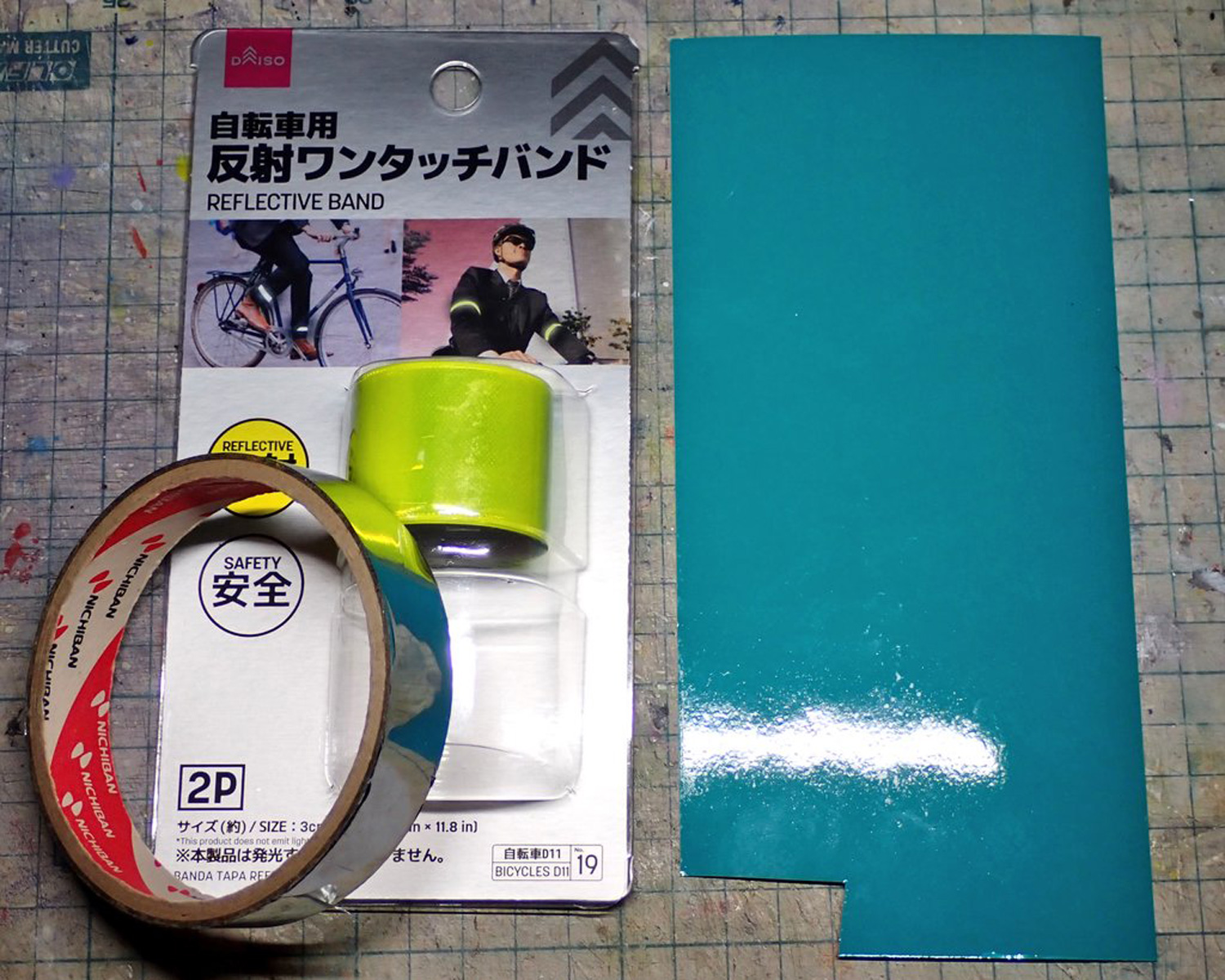 ダイソーの反射バンドの表面を剥いで、裏側にラピーテープ・表面にハセガワのクリアーブルーフィニッシュを貼っています。