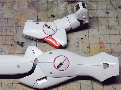 ハードポイントの部分がツルっとしてるのが気になるので手を加えました。 まずライフル側は玩具用デザイン画を参考に製作。