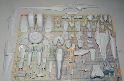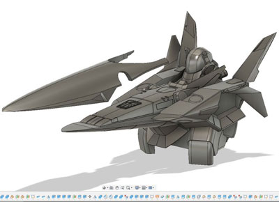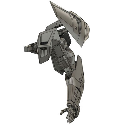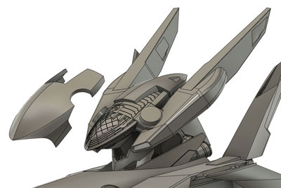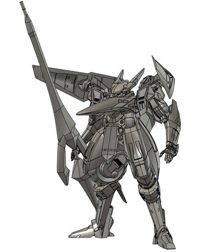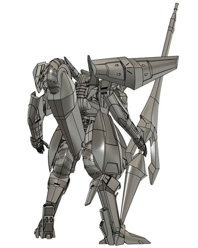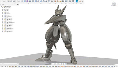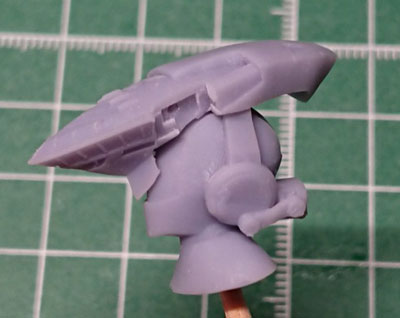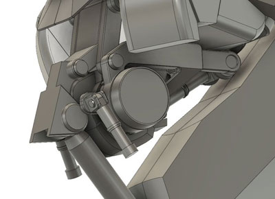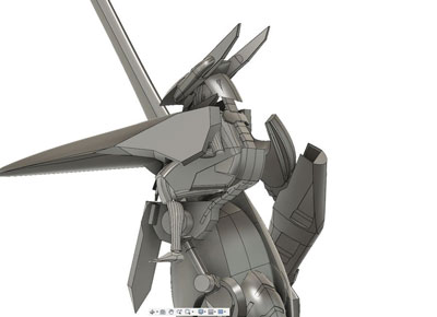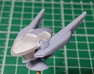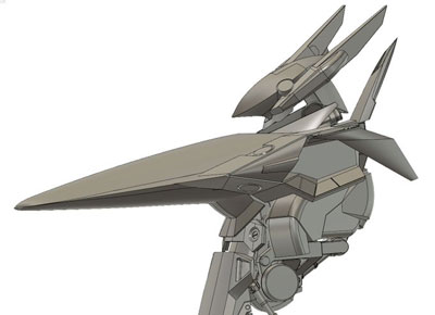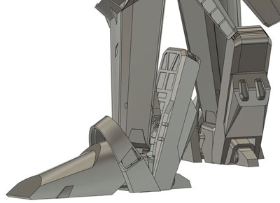 ・2019年12月1日 前面はとりあえず出来たけど、設定画の無い後面でやっぱり悩む。 特に踵から伸びてる箱が謎。 |