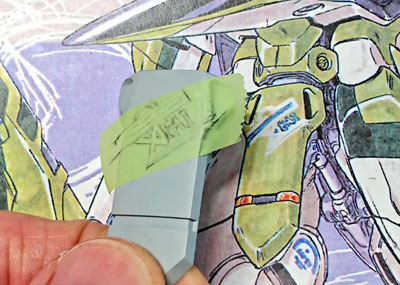 ・2021年6月3日 デカール作り開始。 とりあえずパーツに薄手のテープ貼って下書き。 |