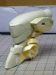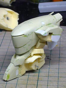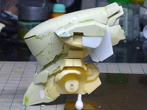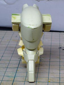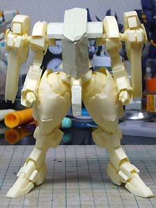 サフ吹き直前の状態。 前面のスリットを彫ってようやく完成に近づいてきた感じ。 背面はこんなところです。 細部はそのうち作る予定。 ちなみに手足は11月以来取り付けていないので、どうなるのか自分でもさっぱりです。