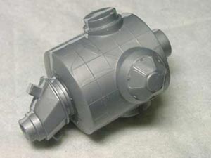 表面は格子状の凸モールド。 デブリシールド表面の形状は全く異なりますが、修正するのは面倒なのでそのまんま。 凸モールドは合わせ目にもかかりますが、これも面倒なのでそのまんま。 手摺りや配線を再現したいところですが、サイズ的に私には無理っぽいなあ。 表面に無数にある白丸黒丸のマーキング(?)は自作デカールを作ってみる予定です。 |