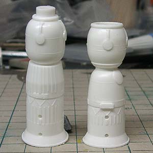 無人貨物輸送船「プログレス」です。 ソユーズ宇宙船を元に作られているため外観が似ています。 てか、どっちがプログレスやねん! キットのモールド自体が嘘くさいため実物の画像を見ても判別できません。^^; とりあえず角張った方がプログレスということで進めます。 |